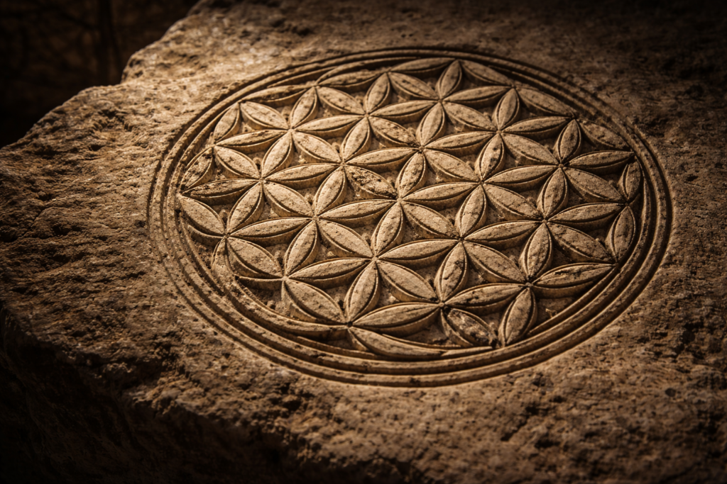The Flower of Life appears carved into the Temple of Osiris at Abydos, estimated at over six thousand years old. The same figure appears in Leonardo’s notebooks, in Kabbalistic manuscripts, in Buddhist temple floors, and in the pattern of a halved apple’s seeds. No tradition owns it. It precedes all of them. This is either the signature of a shared human impulse toward circular symmetry, or it is something more difficult to dismiss: an actual pattern in matter that different civilizations, working independently, kept finding.