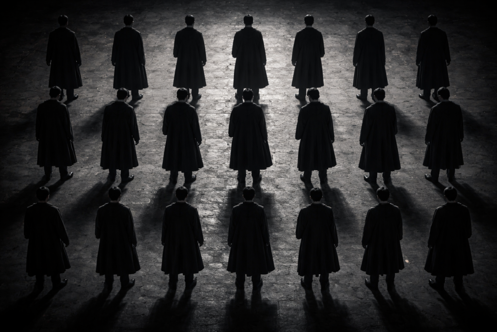 In another sense, they were more honest. The coat knew what its wearer served. The colors were clear. The oath was not a private sentiment but a public shape, worn into the fabric of daily life until it became indistinguishable from the self that wore it.